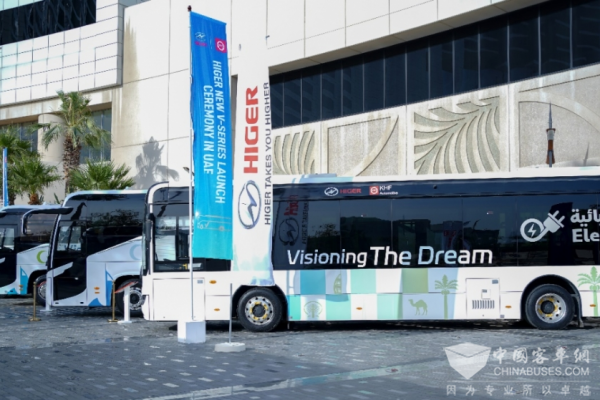 图九:苏州金龙新V系客车在迪拜上市,定制化服务沙漠绿洲,引领阿联酋交通出行新风尚