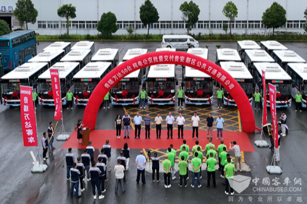 贵阳市公共交通有限公司党委委员、副总经理闵进领导表示:该批50台新能源公交的投入使用,是贵安新区推动公交事业转型升级的第一步,将以此为起点,围绕贵阳公交党委“一二三四五”改革发展思路,持续深化“惠民工具、便民公交、融合型公交、创新性公交”建设,让市民出行更便捷更高效。