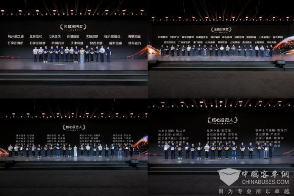 为凝聚产业链发展合力,福田汽车常务副总经理鹿政华主持了优秀经销商表彰及战略、核心投资人授牌仪式。大会现场对上半年表现优异的经销商分别授予"卓越伙伴奖"、"生态引领奖"、"区域深耕奖"、“战略先锋奖”荣誉。同时,为深化渠道变革、加速战略落地,现场为70位长期与公司同频共振的战略及核心投资人授牌,他们将获得"专属政策支持、专业人才培养、战略协同共创"等全方位赋能,共同构建"责任共担、利益共享、权利共生"的价值发展共同体,为福田汽车"争创世界一流商用车企业"的战略目标汇聚强大协同力量。
