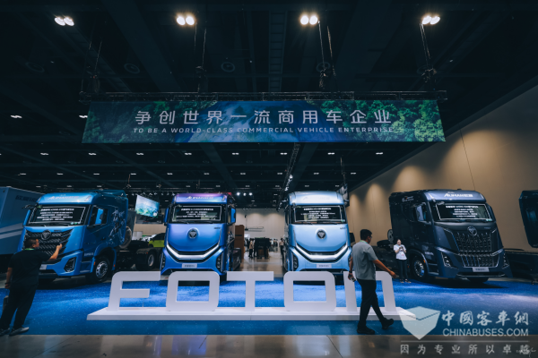 大会现场,福田汽车以十大展区、58款展车的全景阵容,系统展示了在商用车全领域的技术积淀与产品布局,从动力类型到应用场景实现全维度覆盖,彰显“全面国际化、全面新能源化、全面智能化”的战略成果。
