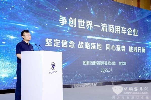 图雅诺新能源事业部总裁张宏亮指出,面对行业竞争加剧和客户需求升级,需以“坚定信念、战略落地、同心聚势、破局开新”为行动纲领,聚焦锚定销量目标、坚持高质量经营、加速乘用化转型、创新营销与分销模式、强化战略落地执行五大战略模块,致力实现图雅诺成为轻客一线品牌的目标。