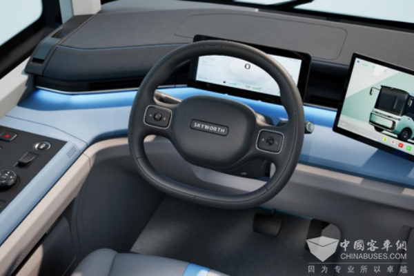 当然,创维都市精灵的越级舒适已然触手可及。双叉臂前悬+四轮空气悬架的加持,带来同级领先的驾乘舒适性。浅色系内饰氛围清新典雅,亲肤座椅面料久坐无压力,柔光氛围灯带更是显著提升档次感。12.8寸自研大屏车机搭配SKYLINK OS,可实现多软件定制、多模态交互、多场景设置等功能,增强运营吸引力和服务体验感。