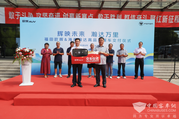 2025年8月7日,福田欧辉与海南瀚达旅游客运有限公司交车仪式在北京市隆重举行,福田欧辉向海南瀚达批量交付30台BJ6826、BJ6906纯电城间客车。车辆交付后,将在海南各大黄金旅游线路投运,为旅客带来更绿色、高效、智慧的出行体验,加速海南客运交通的绿色低碳转型,助力海南“世界一流国际旅游胜地”建设。