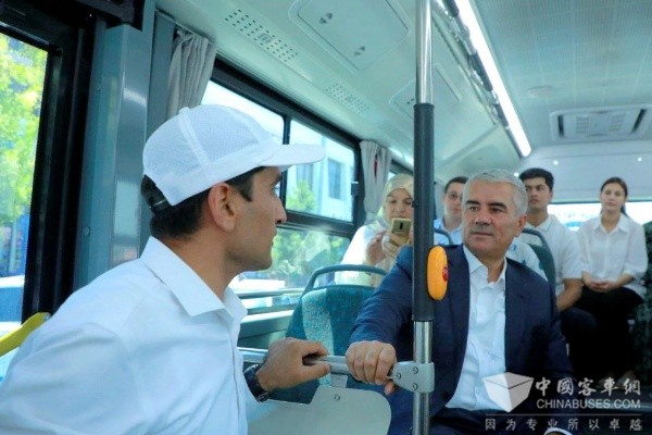 图 ▍布哈拉州州长Botir Zaripov(前排右一)体验中通客车