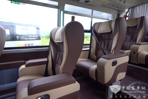 作为苏州金龙面向高端商旅市场精心打造的旗舰车型,海格V9于细节之处尽显定制化匠心。其采用的1+1座椅布局远超常规大巴标准,每一个座位均依据人体工学原理进行设计,大幅提升了支撑性与包裹感,即便长途乘坐也依然舒适从容。
