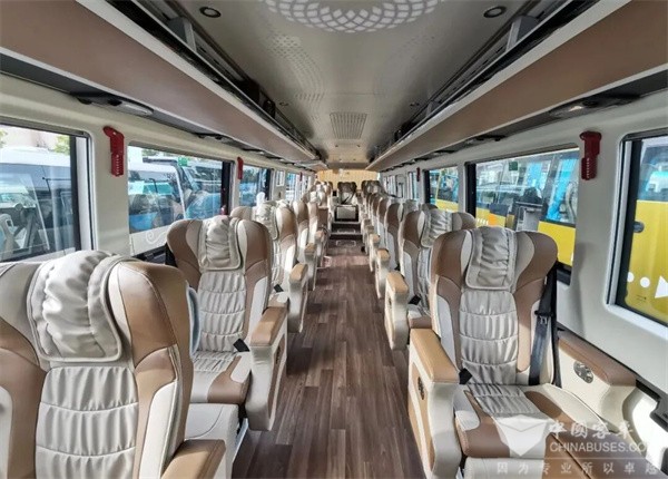 中通H12搭载新一代智能座舱系统,支持智能语音交互,同时采用1+1布局的商务座椅,配备多功能扶手、USB充电接口等人性化配置,全面提升了客运服务的智能化与品质感。此外,该车创新采用“新版黄金动力链”,充分协同集团资源优势,定制开发更适应车辆工况的H系列发动机、变速箱、车桥,实现动力性与经济性的全面领先。