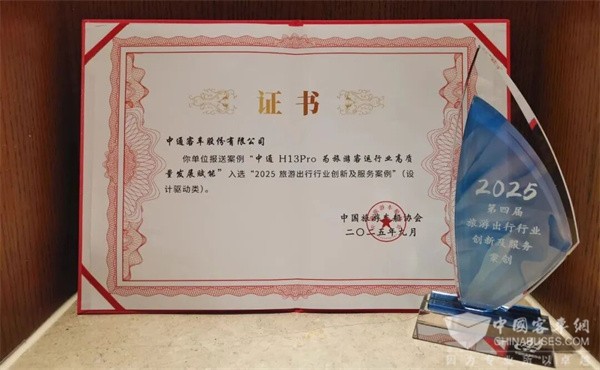 会上,“2025旅游出行行业创新及服务精品案例”结果正式发布,“中通H13Pro为旅游客运行业高质量发展赋能”作为助力行业高品质发展的典型案例,成功入选。