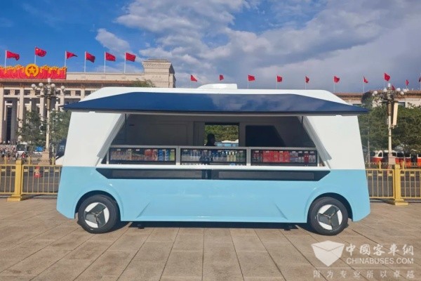 此外,车内采用全低地板,一级踏步,内饰采用阻燃、环保、无异味、零甲醛材料;内部还预留了冰柜、微波炉等安装空间,以及收银台等设备安装平台。多功能的空间布局可满足游客的多样化需求,小小的便民服务车也能承载大大的首都民生福祉与温度。