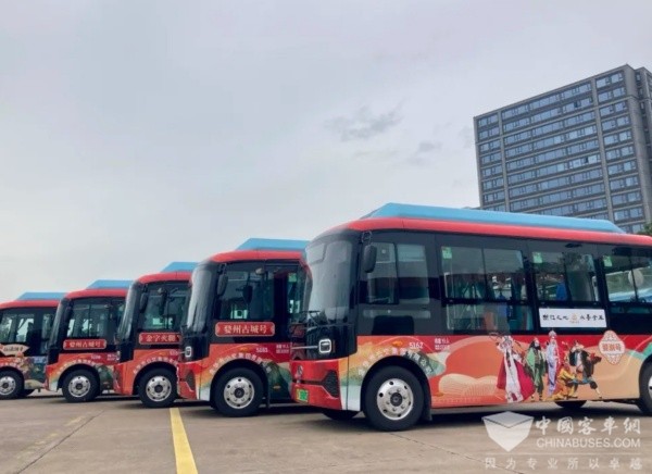 作为专线支撑的安凯E60外观采用全新低风阻流线造型,时尚前卫,Q萌可爱,与金华火腿、婺剧、万佛塔、三江六岸等金华本土文化元素巧妙融合,一车一主题化身为“婺州古城号”“金字火腿号”“仙源湖号”“婺剧号”,宛如带着金华印记的行走诗篇,成为这座城市最具辨识度的风景线。