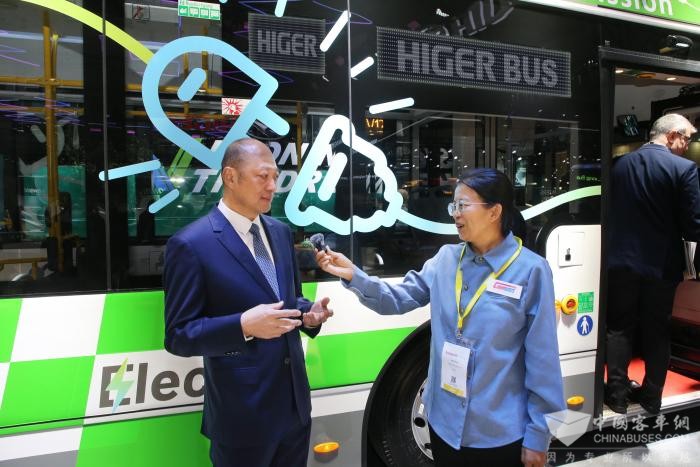 苏州金龙海外销售总经理姜海峰(左)接受行业媒体专访