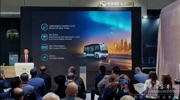 展会伊始,金龙展台人潮涌动、气氛热烈,吸引了众多海内外主流媒体与专业观众的关注。侯晨磊董事长表示:“金龙已完成全产品矩阵升级,涵盖七大产品系列及一个配套产业集群,旨在为全球客户提供更具竞争力的解决方案。”这一产品阵容,既是金龙二十载欧洲耕耘的成果体现,也彰显了金龙在技术领域的持续突破与对欧洲市场的深刻洞察。作为此次升级成果的集中展示,全方位展现了金龙的创新实力与技术前瞻性。