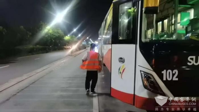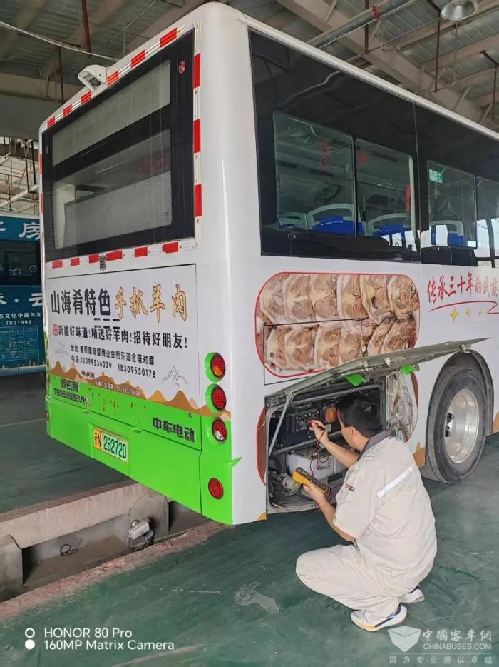 在新穗公交保障一线,邓圣发严格遵循维保流程,对新能源车辆开展全面“体检”——从电池性能到电机运转,从车身外观到车内设备,不放过任何细节,确保每辆车以最佳状态投入运营。