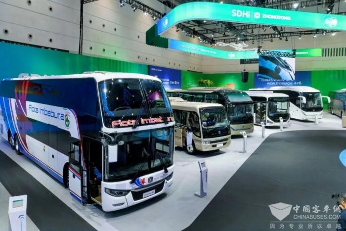 此次共展出11款展品,包含城市公交、旅游大巴、高端商务等产品系列,涵盖纯电动、燃油、天然气三种动力形式,全方位展示了中通客车为全球用户提供全场景解决方案的能力。