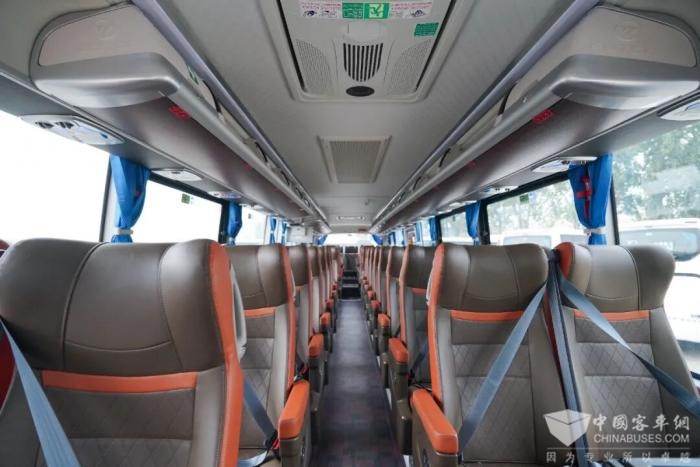 BJ6132外观采用流线型设计,大气典雅;内饰则注重人性化与舒适度,座椅布局为55+1,空间利用率高,营造出宽敞明亮的乘车环境。车内采用高密度海绵座椅、车载饮水机、液晶小电视等配置,让旅客在旅途中尽享惬意与舒适。同时,驾驶区采用全封闭驾驶舱设计,配备多功能自适应司机座椅,为驾驶员提供了舒适便捷的操作环境,保障行车安全。