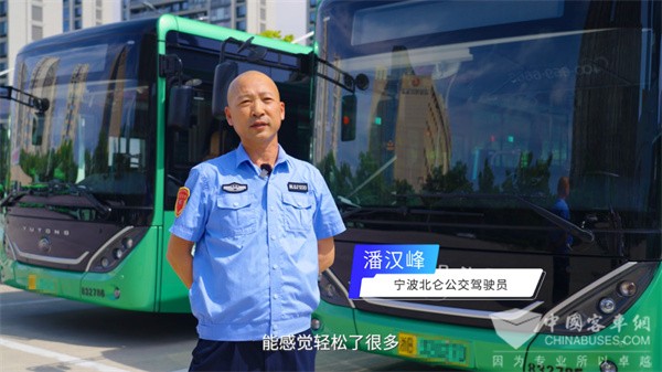 “开上这批新车之后,能感觉轻松了很多,也舒服了很多,另外,这批车有驾驶辅助系统,对我们驾驶帮助很大,在车辆起步的时候,如果前面有人,不管怎么给油它都走不了,开这样的车,很安心,很踏实。”提起这批可以时刻做到“眼观六路耳听八方”的新车,宁波北仑公交驾驶员潘汉峰感触颇深。