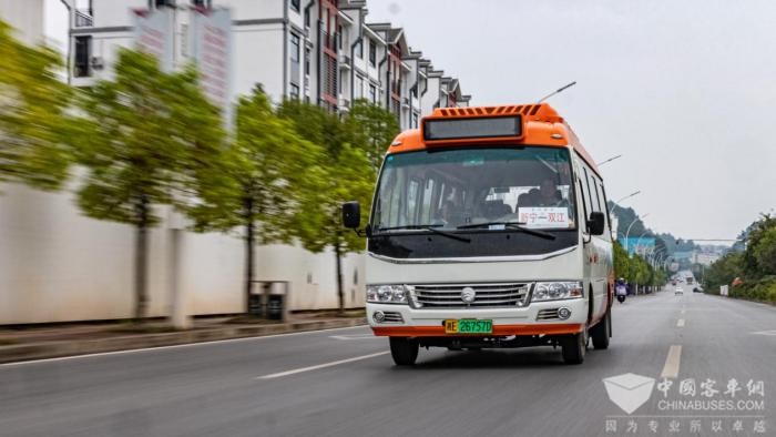 当肩挑手提的老百姓在县城汽车西站,坐上崭新的新能源中巴车抵达乡村一个个站点,他们在金旅车上带着乡音的唠家常、彼此之间脸上的笑容抵达家门口时;