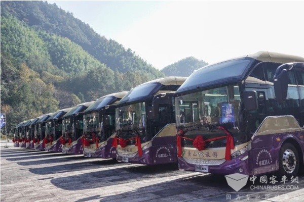 仪式现场,20辆身披“黄山定制彩绘”的安凯N90E纯电动景交车正式列队入驻这座天下名山,将以卓越的性能与舒适的体验,承载着四海宾朋的期待,开启一段穿梭于水墨画卷中的悦然旅程。