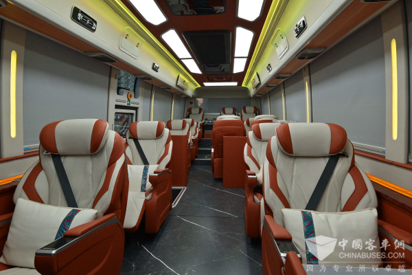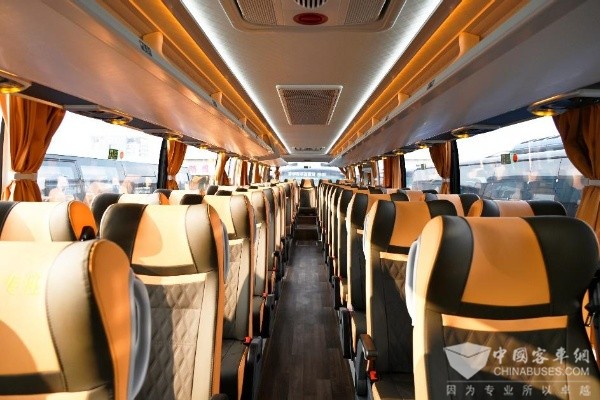 以座椅为例,海格公路和谐号采用“1+1”“2+1”大商务座椅配置,座椅采用人体工学设计,坐感舒适;而且座位空间宽敞,9米车型座位数仅“13+1”,无论是休息,还是观光,都能享受最佳体验。