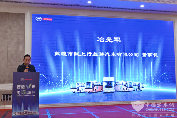 敦煌市陇上行旅游汽车有限公司董事长冶光军在交流会上表示,“今年6月公司购买了批量9米、17座新V系客车,腿部和头部空间充足宽裕,再加上风噪、胎噪比较小,舒适感加倍。在新V系的加持下,我们驾驶员收到的锦旗都比以前多了!”