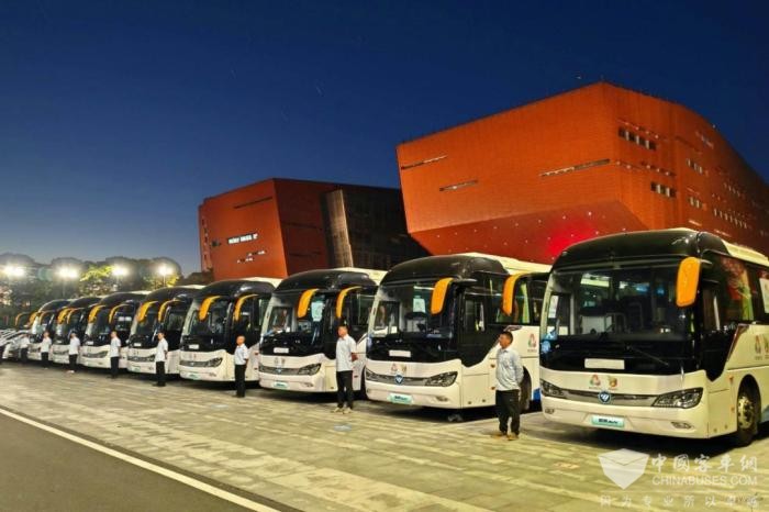 以第十五届全运会为例,福田欧辉BJ6117纯电城间客车承担起运动员、裁判员及工作人员在广州、深圳、东莞等赛区之间的接驳任务。为确保赛事顺利进行,福田欧辉复刻北京冬奥会保障经验,构建了全方位服务保障体系:派出资深工程师组成专属保障团队,实行24小时驻点保障,配备充足的备件库存;每日对车辆三电系统、智能配置等进行逐项排查,建立“一车一档”健康档案,将潜在故障杜绝于萌芽状态;从清晨首班发车到深夜末班值守,保障团队全程待命,确保车辆始终以最佳状态投入运营,最终以稳定的性能与舒适的驾乘体验赢得各方好评,再次印证“国有盛事,必有福田”的品牌实力。