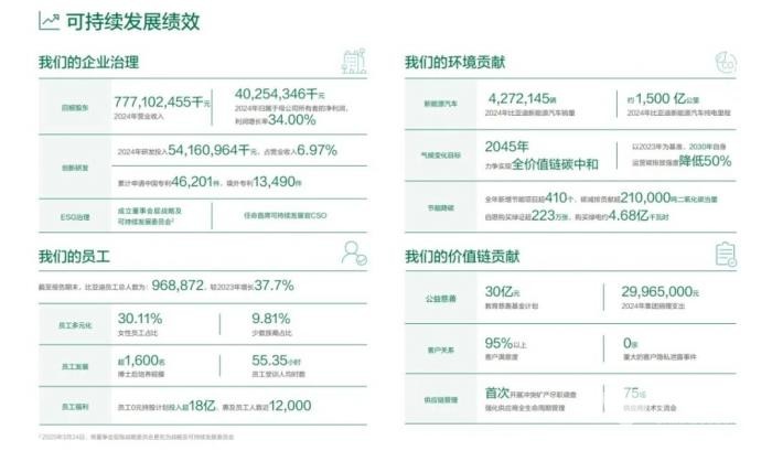 2024年,比亚迪以ESG治理为引擎,全面升级公司ESG管治架构,发布“DREAMS”可持续发展战略,承诺2045年碳中和目标,并围绕供应链ESG管理、人才发展、产品创新等关键维度,制定可量化、可追踪的阶段性目标。我们始终高度关注广大利益相关方对公司的ESG发展期望,已连续14年发布社会责任报告,并在2025年发布首份可持续发展报告,深度融合国内外ESG标准指引,将信息披露透明度提升至新高度。