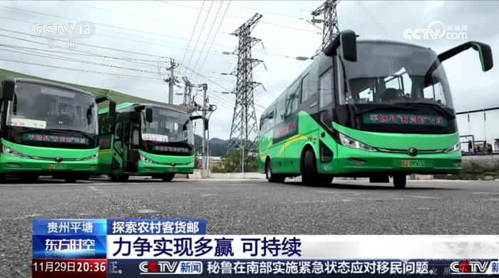 2025年11月29日,CCTV13频道《东方时空》栏目聚焦平塘县“客货邮”公交带货新模式,对其进行了专题报道,其中宇通纯电动客车以大运力、低能耗等优势助力“公交+快递”融合发展新模式。