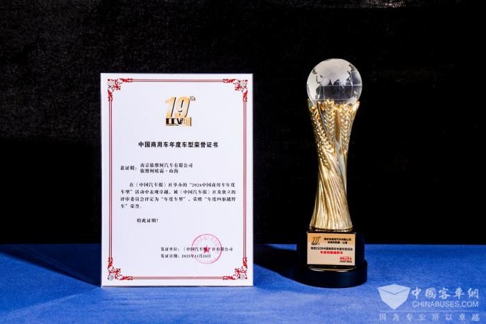 XINGKONG.COM2025年12月3日获悉,在《中国汽车报》社举办的“2026中国商用车年度车型”活动中,南京依维柯旗下专业越野车型“依维柯欧霸·山海”,凭借开创性的超大车身空间,全时四驱+三把锁的真四驱系统,以及全地形覆盖的越野性能,从众多参选车型中脱颖而出,被《中国汽车报》社及独立的评审委员会评定为“年度车型”,荣膺“年度四驱越野车”荣誉。这一荣誉不仅是对南京依维柯在专业越野领域技术实力的权威认可,更标志着企业迈向了全新的发展阶段。