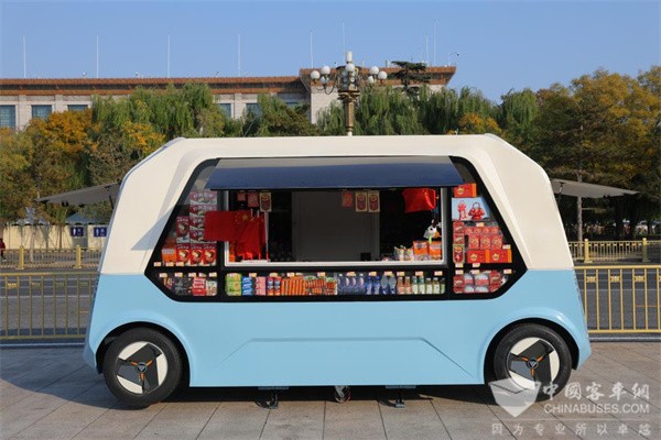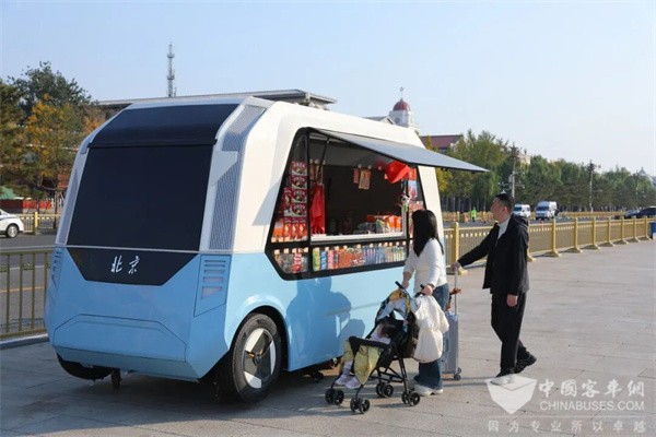 2025年5月,北汽福田欧辉客车精心打造的便民服务车正式亮相天安门广场,以国典品质服务八方游客,迅速成为广场上的暖心驿站。便民服务车不仅提供平价饮品、零食和特色文创商品,还配备应急药箱等便民设施,以细致入微的服务传递“北京温度”,成为展现首都形象与民生关怀的重要窗口。