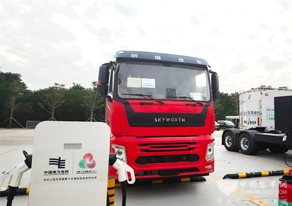 创维汽车积极投入绿色发展,借助在新能源车辆领域的技术积累,为十五运会提供了扎实的供电保障。新能源重卡接入双向充电桩,成为“移动充电宝”,与深圳的构网储能、车网互动系统协同工作,在市电波动时快速响应,确保闭幕式电力供应不间断。