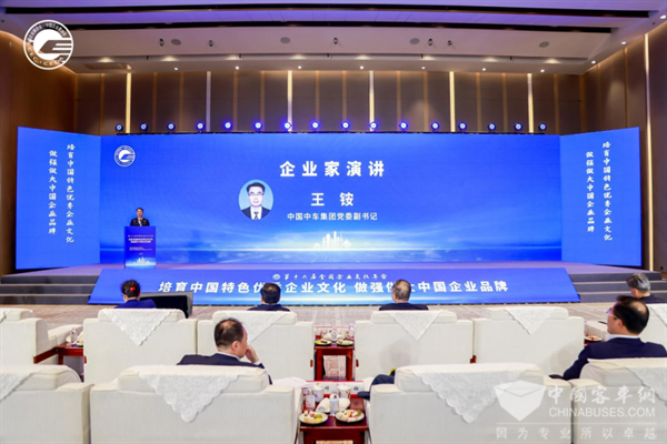 王铵分享了中国中车以科技和品质筑牢硬实力、以文化和管理凝聚软实力、以责任和价值彰显暖实力推进文化品牌建设的实践探索。王铵表示,中车将坚守“连接世界、造福人类”的使命,坚定文化自信自强,努力携手更多优秀的中国品牌,带着深厚的文化底蕴、精湛的核心技术、温暖的责任担当走向世界,用中国智慧服务全球,以中国方案共创美好未来。