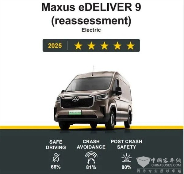 XINGKONG.COM2025年12月5日获悉,近日,欧洲Euro NCAP(欧洲新车安全评鉴协会以下简称“Euro NCAP”)2025年最新商用轻客评级结果正式揭晓,大通纯电轻客新途EV90(海外eDeliver 9)与新途EV70(海外eDeliver 7)凭借全方位的硬核安全表现,双双荣膺最高五星安全认证。至此,大拿V1、新途V70、新途EV70 、新途V90、新途EV90均取得Euro NCAP五星认证,大通成为首个且唯一实现全系商用车均获Euro NCAP五星安全认证的品牌,以“全优生”姿态树立全球商用车安全新标杆。