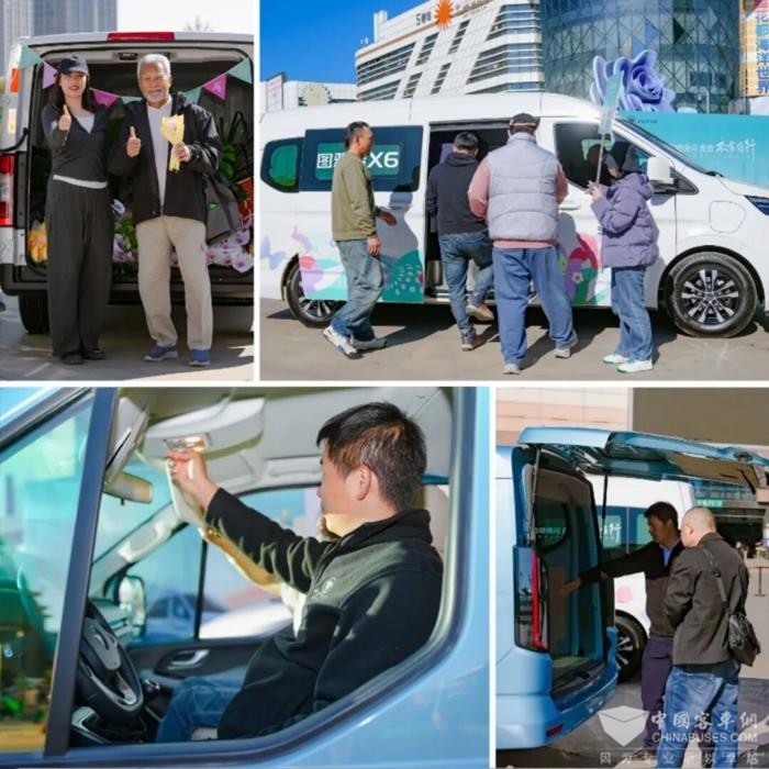 作为本次摆渡服务的主力车型,图雅诺X6改变人们对短途接驳车的传统印象,将高品质客运的舒适与便捷带入日常场景。活动现场,斗南花市与金桂街地铁站入口各设一名接待人员手举接送引导牌,为广大市民及游客提供往返接驳服务。穿梭于花市与地铁站之间的图雅诺X6,不仅以醒目的巡游姿态成为街头一道独特风景,更用实际体验征服每一位乘客。