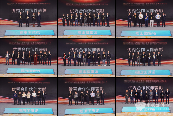 成绩源于并肩同行。大会尾声,图雅诺新能源事业部党委副书记游海明主持优秀合作伙伴表彰,对2025年业绩突出、协同高效的经销商、服务商、供应商予以嘉奖。荣誉既是对过往贡献的肯定,更是对未来共进的期许,进一步夯实全价值链凝聚力,成为福田图雅诺引领市场的坚实底气。