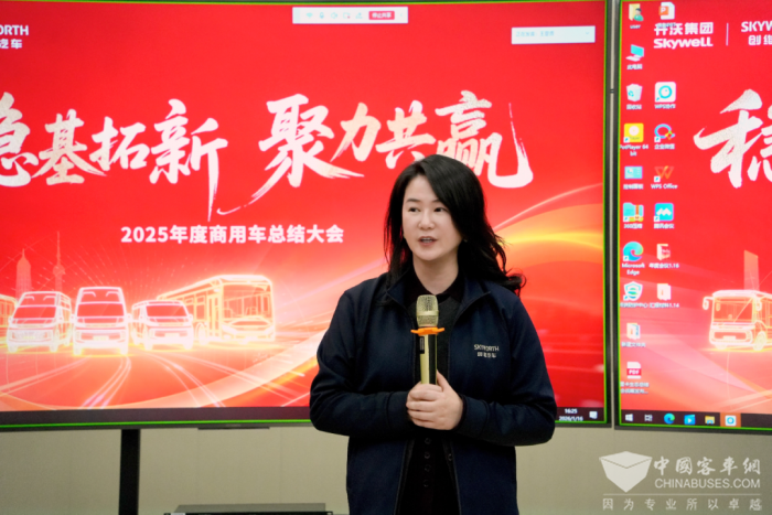 随后,会议进入高效务实的核心议程。营销体系各负责人依次登台,基于详实数据对2025年度的服务售后情况与各区域市场表现进行了深度复盘与汇报。在此基础上,客车、轻客、卡车、环卫及换电等各核心业务板块负责人,相继发布了2026年销售战略,清晰勾勒出新一年的进攻蓝图。