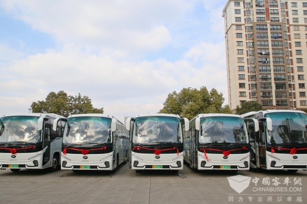 共筑区域出行新生态!批量苏州金龙新V系客车交付张家港港城汽运