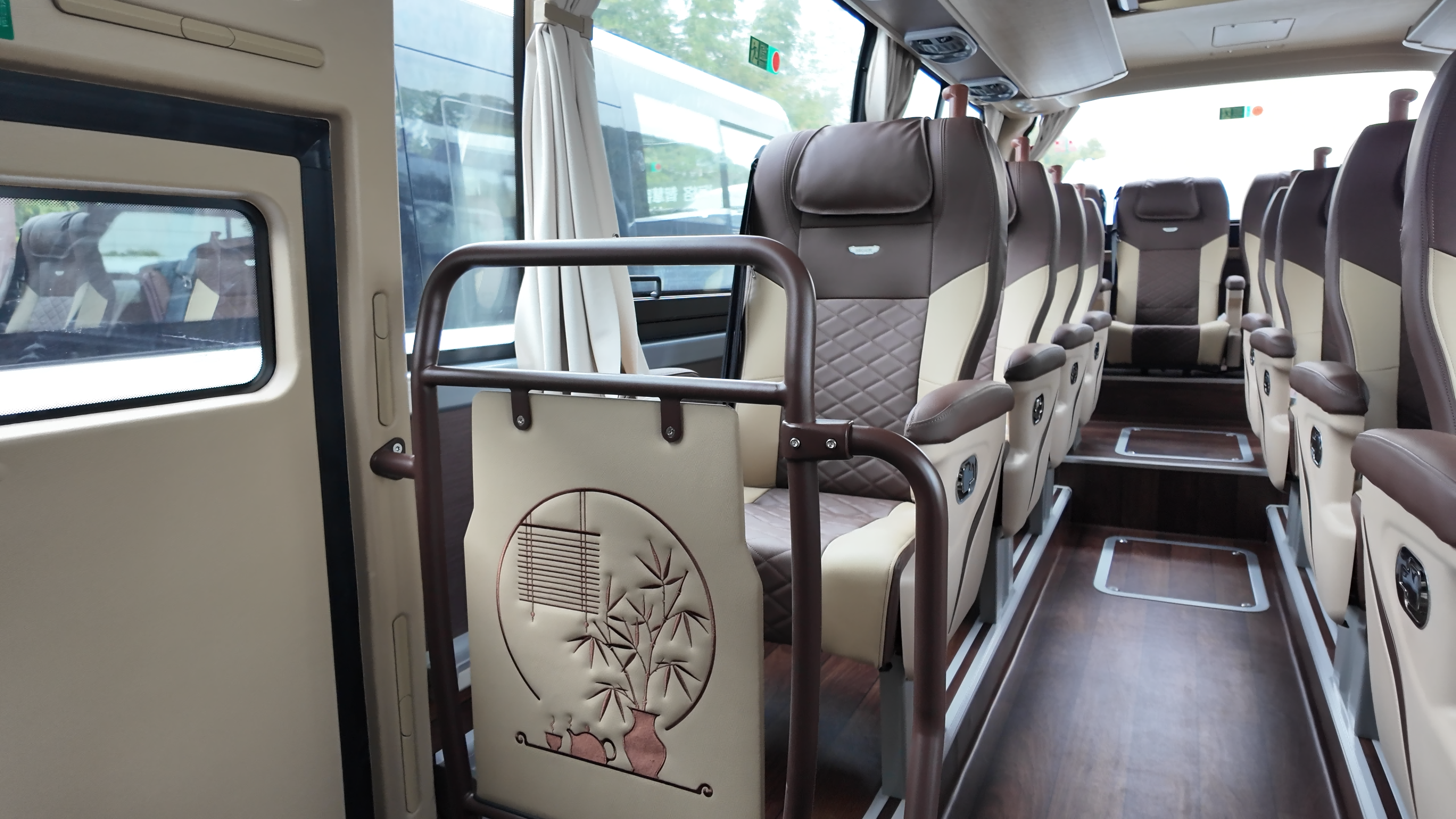当被问及新V系还有什么打动人心的地方,何丽笑着提到了一个词——“移动影院”。车内采用“2+1”座椅布局,专为高端旅游市场量身定制。据介绍这批客车旨在满足国内精品游、长线游及个性化定制线路的需求,因此对车内空间、USB充电接口、饮水机及智能座舱系统等配置均提出高要求,以期为乘客带来更加卓越的旅途体验。并且新V系的内饰设计彻底颠覆了传统客车的沉闷。新中式风格、氛围灯、更符合人体工学的座椅,甚至被游客评价为像“移动影院”。