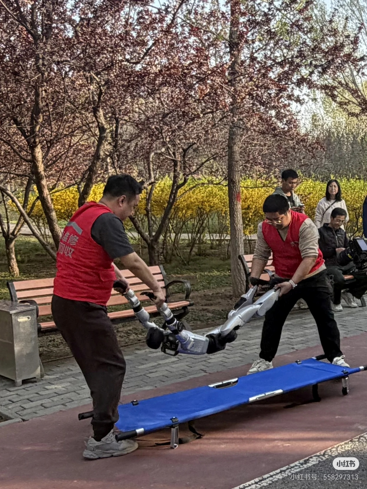 赛道上,人形机器人步履铿锵,试图挑战人类极限;赛道下,却发生了一些让人忍俊不禁的“小插曲”。有的机器人“健步如飞”,极限速度达到10米/秒,把陪跑的工程师远远甩在身后;有的跑着突然“腿脚失灵”,原地摔倒,引得围观网友直呼“笑不活了”。然而,真正让网友们“破防”的,是现场一个意外的发现——这些机器人,竟然也有专属的“救护车”!