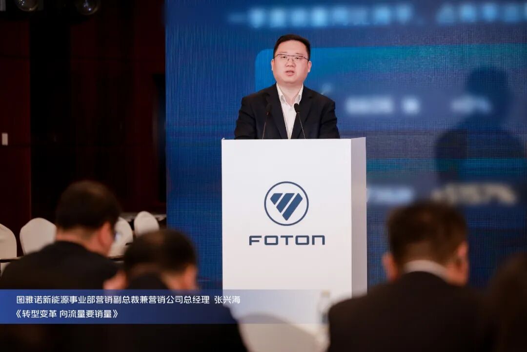 紧随战略蓝图,福田汽车图雅诺新能源事业部营销副总裁张兴海以《转型变革向流量要销量》为题,围绕二季度市场攻坚作出具体策略部署。张兴海指出,新媒体营销不是锦上添花、是生存底线;不是选修课、而是必修课,唯有立足全生态价值创造,借助新媒体扩大集客开口,将线上流量高效转化为终端销量,才能搭建更具韧性的核心竞争力。针对新能源大中VAN市场和中高端赛道,张兴海宣布,2026年将推动全系产品焕新,精准发力细分市场,并同步推进网络升级、生态链合与全域传播的协同作战,以“流量变现”的实效确保战略高效落地,保障二季度销量目标达成。