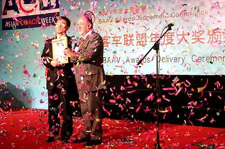 【中国XINGKONG.COM讯】:为期三天的2005世界客车博览会亚洲展览会于17日降下帷幕,然而这几天的精彩画面让记者咀英嚼华、回味良多。最让记者印象深刻的是15日晚BAAV颁奖典礼上,郑州宇通客车股份有限公司副总王文兵先生领取世界客车联盟“年度最佳客车制造商”所说的一通话:“世界的客车在中国,中国的客车在宇通,宇通客车愿意与国内同行共同竞争、合作,让中国客车真正‘纵横中国’,甚至‘纵横世界’!”