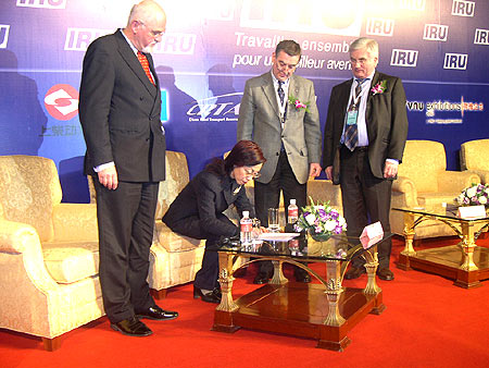 Ortun-Silvan先生、格利菲旅行公司中国代表Bernard Bialylew先生与世界道路运输联盟日内瓦货运与促进主席Peter