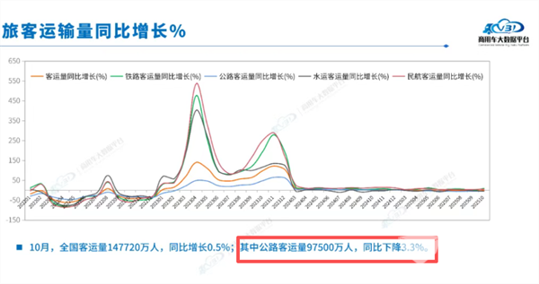 根据商用车专业委员会提供的最新数据,2025年10月我国公路客运量为97500万人次,同比依然下降3.3%,这说明当前我国依靠公路客运出行的数量呈现萎缩之态势。