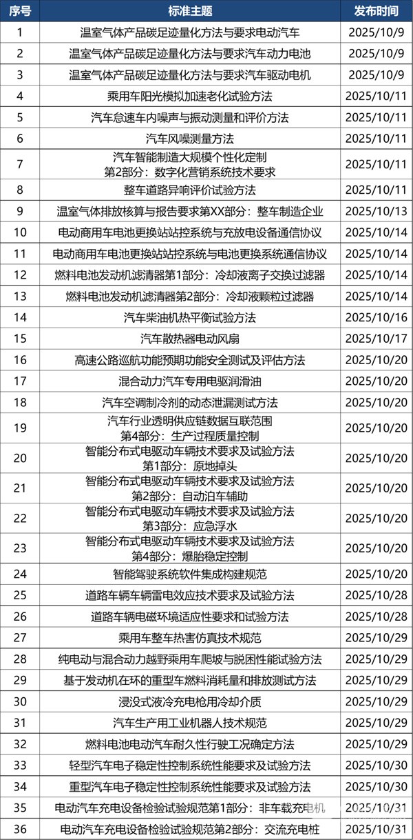 对此,笔者根据慧眼看车等对2025年11月相关汽车行业标准法规汇总进行归纳汇总,并进行了扼要分析,供行业参考!