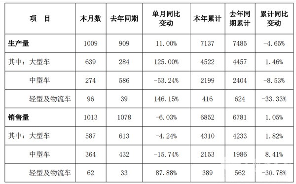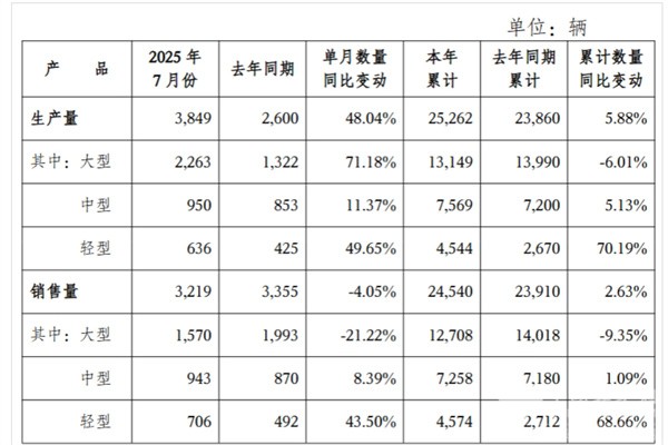 1、7月:销售3402辆增21.85%;大中轻型全线增长,中型领涨