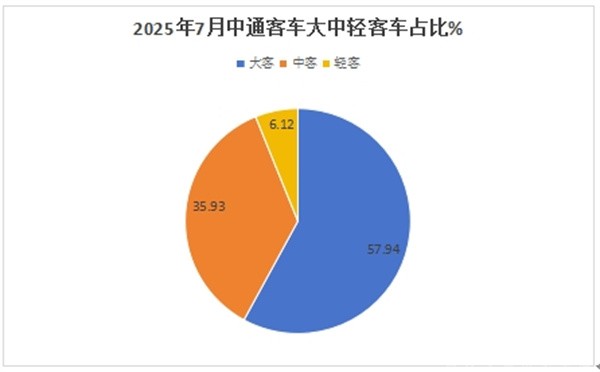 ---从产品销售结构来看,2025年7月份,中通大型客车销量最多(占比57.95%)领跑各细分市场;是中通客车市场的绝对主体部分;中型客车销量占比35.93%居第二;轻型及物流车占比6.12%,居最少。