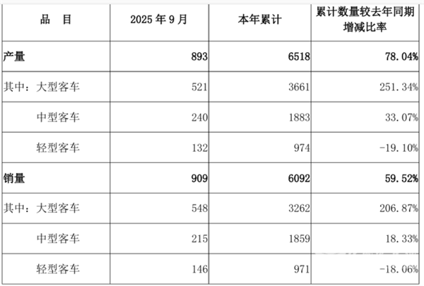 可见无论是2025年9月还是1-9月,安凯客车的销量业绩同比增速均较高,表现均抢眼。
