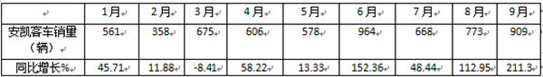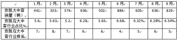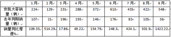 下面笔者从市场销量层面来简要分析一下安凯客车今年9月的主要销量特点。