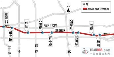 朝阳路快速公交计划于8月1日开通运行,记者14日从北京公交集团获悉,朝阳路快速公交将从杨闸沿朝阳路直到朝阳门,全线共设21个车站。
