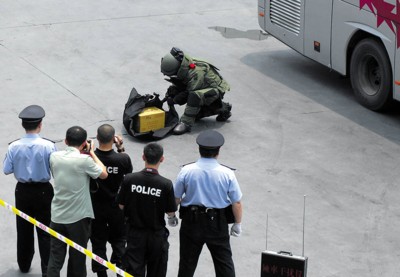 与此同时,对于安置在站长室内的车内人员,刑侦人员开始进行甄别,确定其中是否有恐怖分子。技术人员也开始对可疑物体进行进一步勘查,卫生部门对周边环境进行检测,并做好致病微生物采样和紧急防疫准备。11点50分不到,技术人员对可疑物品勘查完毕,并将其移至防爆专用工具内带离现场。