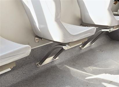 武器二:快速公交车的底盘共有6个气囊,左右各3个,只要靠站台一侧的气囊放气,就能达到倾斜效果,它分为倾斜5CM和10CM两个档。今后如果快速公交车在普通的路上走,靠近普通公交站台,倾斜车身后更方便乘客下车;6个气囊都放气,车身底盘更低,更安全。