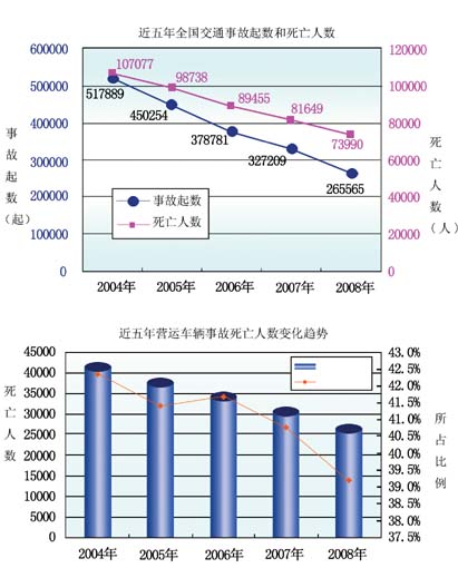 就在今天,公安部网站发表文章称,2008年“全国道路交通安全形势总体平稳”。文章列举了一系列数据:2008年,全国共发生道路交通事故265204起,造成73484人死亡、304919人受伤,直接财产损失10.1亿元。与2007年相比,以上各项都有所减少。